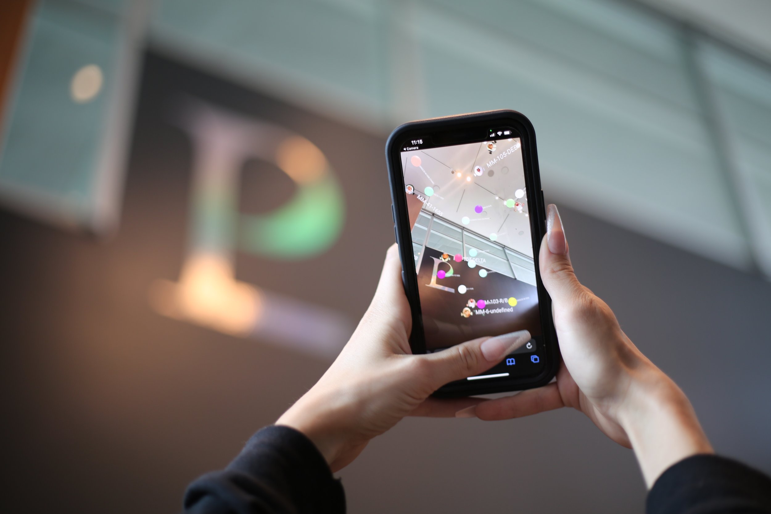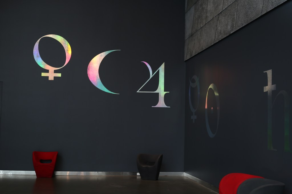 Celestial Passage (2023) is an augmented reality (AR) that uses the AGA’s Main Hall as a simulated observation site for viewing North American Aerospace Defense Command (NORAD) satellite data in real-time. Visitors can navigate a data portrait of orbiting traffic amongst artificially-generated angels. This AR is superimposed onto planetary symbols fixed onto the walls of Main Hall, mapped to record Pluto’s entry into the constellation Aquarius. The AR re-presents information to audiences while rendering visible the unseen in the public domain of space.